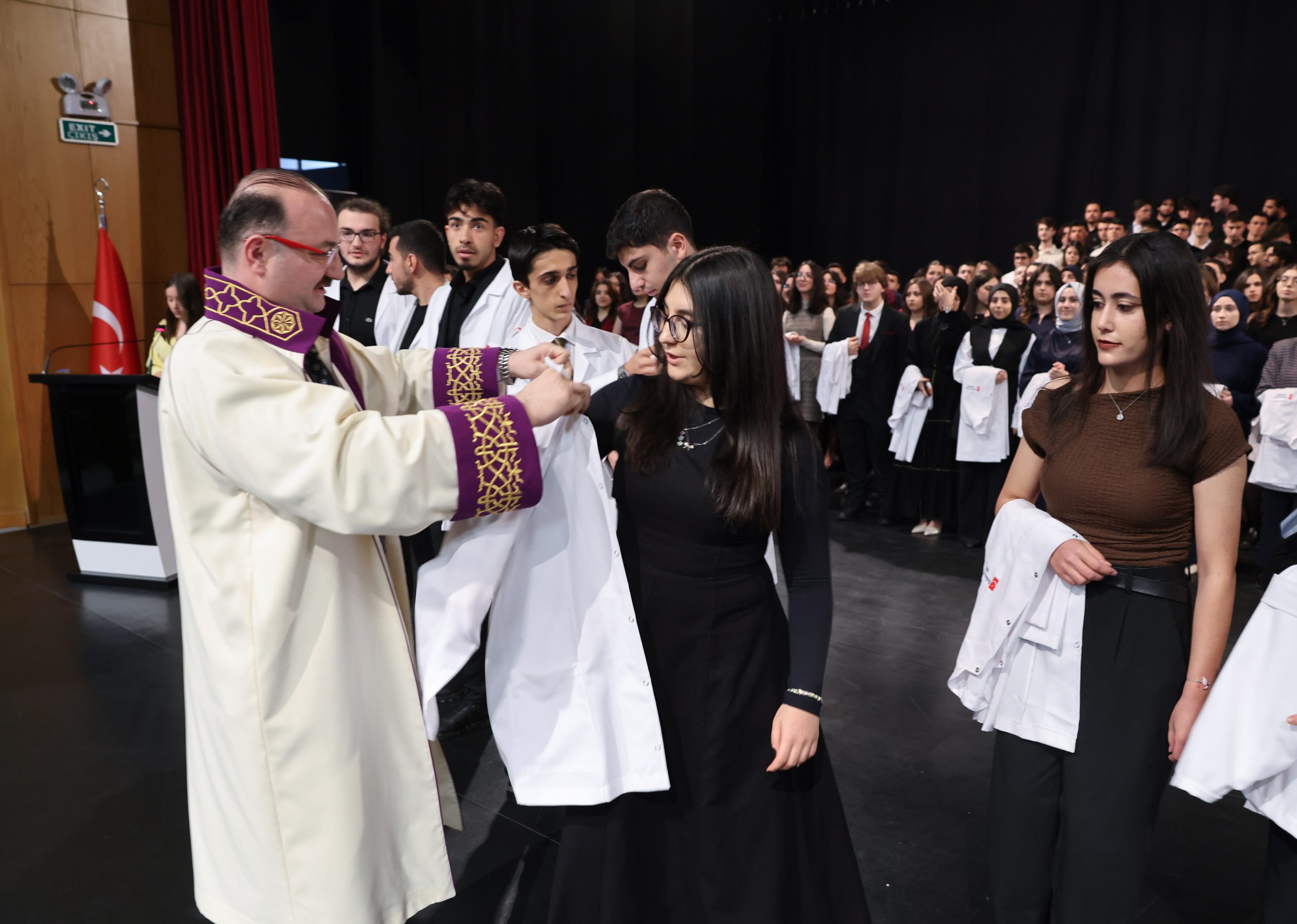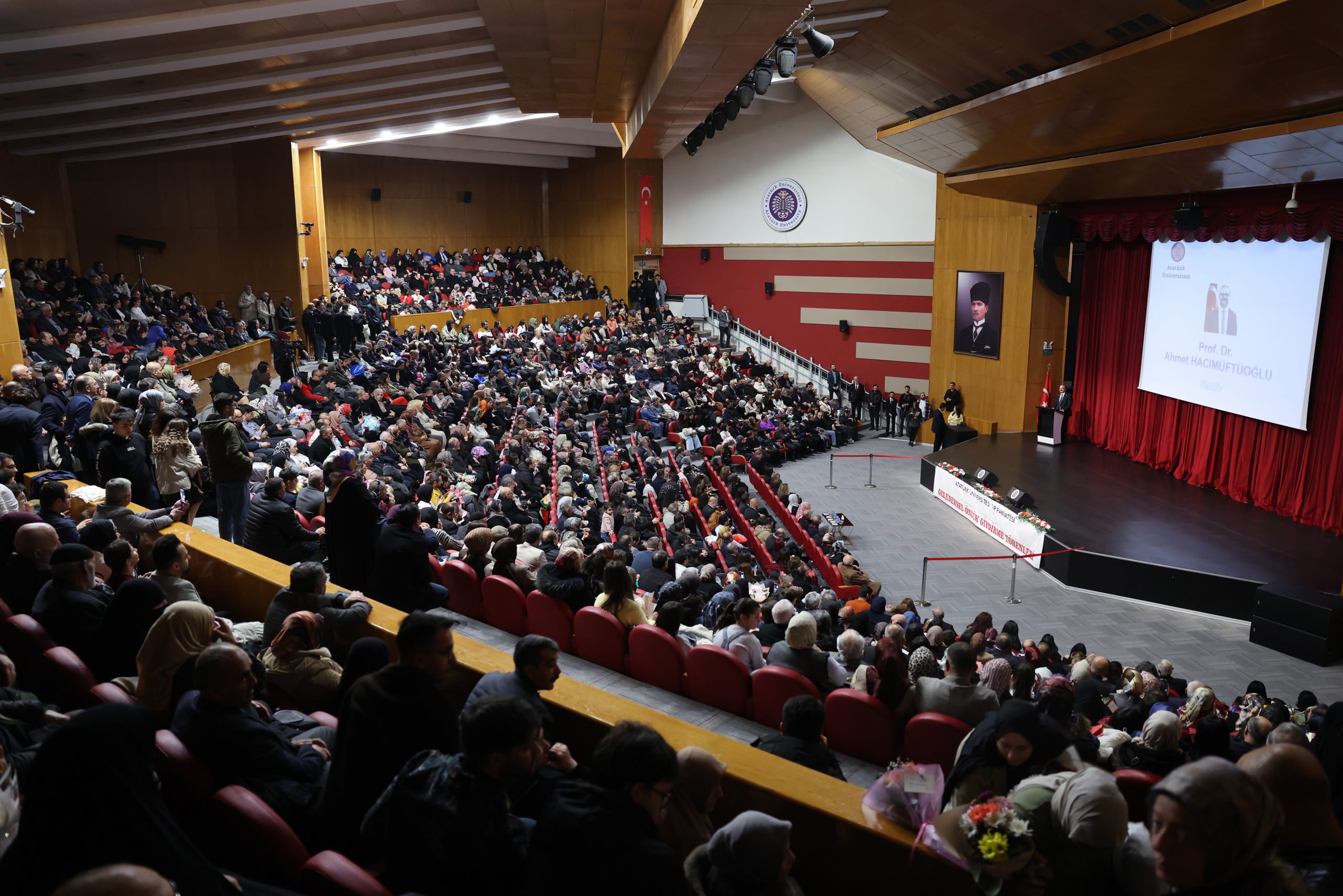 Atatürk Üniversitesi Tıp Fakültesi 1. sınıf öğrencilerine yönelik Geleneksel Önlük Giyme Töreni, 15 Temmuz Milli İrade Salonunda yoğun katılımla gerçekleştirildi. 2025-2026 Akademik Dönemi itibarıyla üniversite hayatına adım atan 316 öğrenci, hekimlik yolculuklarının ilk ve en anlamlı sembollerinden biri olan beyaz önlüğü giymenin gururunu yaşadı.