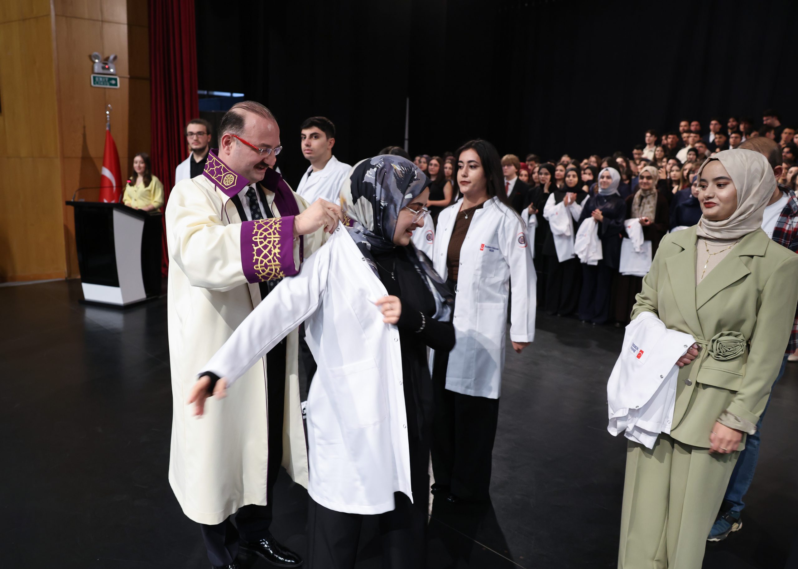 Konuşmaların ardından 1. sınıf öğrencileri, akademisyenler eşliğinde beyaz önlüklerini giyerek hekimlik mesleğine ilk adımlarını attı. Tören, günün anısına çekilen hatıra fotoğrafları ile sona erdi. Atatürk Üniversitesi Tıp Fakültesinde geleneksel hale gelen Önlük Giyme Töreni, genç hekim adayları için unutulmaz bir başlangıç olurken, üniversitenin nitelikli sağlık profesyonelleri yetiştirme vizyonunu bir kez daha gözler önüne serdi.