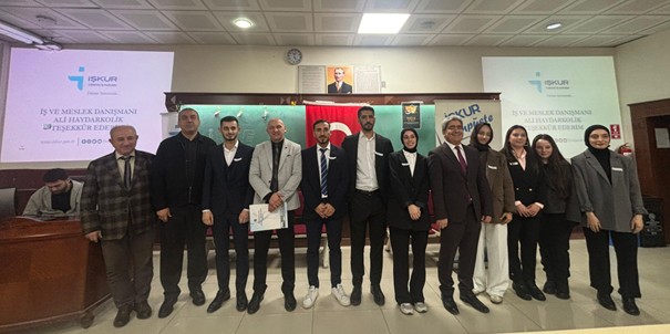 11.12.2025 tarihinde İş ve Meslek Danışmanı Ali Haydar KOLİK’e “İş-Kur ve Faaliyetleri” konulu sunumundan dolayı Dekanlık makamının hazırladığı “Teşekkür Belgesi” takdim edilmiştir.