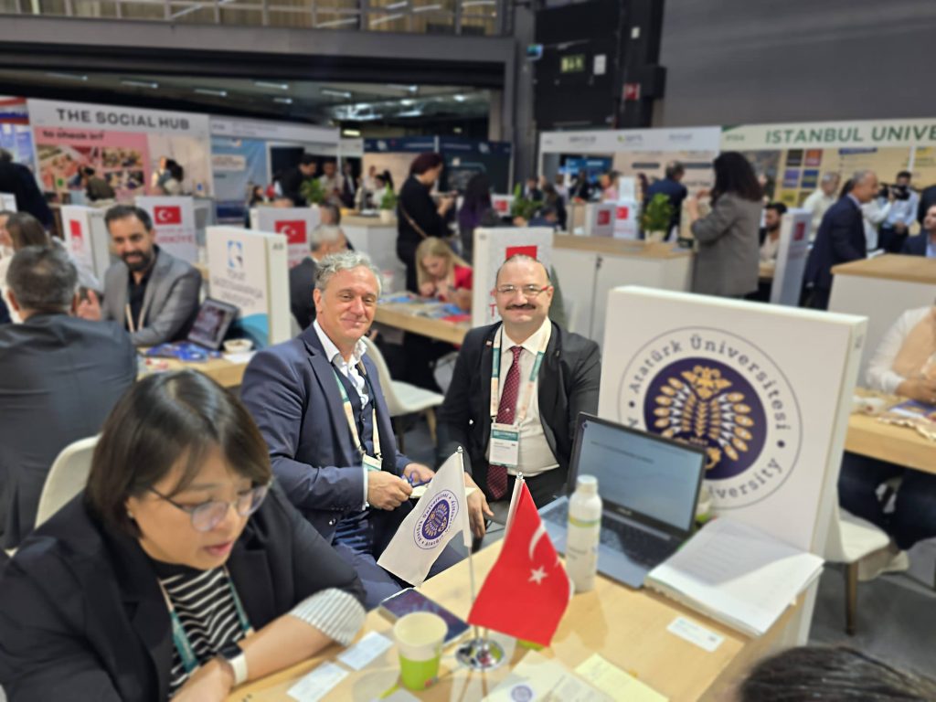 9–12 Eylül 2025 tarihleri arasında İsveç’in Göteborg kentinde düzenlenen EAIE (European Association for International Education) Fuarı’na Atatürk Üniversitesi de katıldı. Rektör Prof. Dr. Ahmet Hacımüftüoğlu başkanlığındaki üniversite heyeti; Rektör Yardımcısı Prof. Dr. Bülent Çavuşoğlu, Prof. Dr. Mustafa Gül, Öğr. Gör. Asena Dinç ve Öğr. Gör. Pınar Uçak’tan oluştu. Heyet, fuar boyunca ikili görüşmeler yaptı, akademik iş birlikleri ve uluslararası projeler üzerine temaslarda bulundu. Rektör Ahmet Hacımüftüoğlu, fuarın üniversitenin uluslararası görünürlüğünü artırdığını ve küresel ölçekte yeni akademik ortaklıklar için fırsatlar sunduğunu belirtti. Ayrıca, Türkiye Ulusal Ajansı standında Atatürk Üniversitesinin Erasmus+ programları, akademik fırsatları ve uluslararası öğrenci imkânları tanıtıldı. Fuar kapsamında, Stockholm Büyükelçisi Yönet Can Tezel, Türkiye Ulusal Ajansı Başkanı İlker Astarcı ve diğer yetkililer Atatürk Üniversitesi standını ziyaret ederek, Türkiye’nin uluslararası eğitimdeki rolünü güçlendirmeye yönelik iş birliği olanaklarını görüştüler.