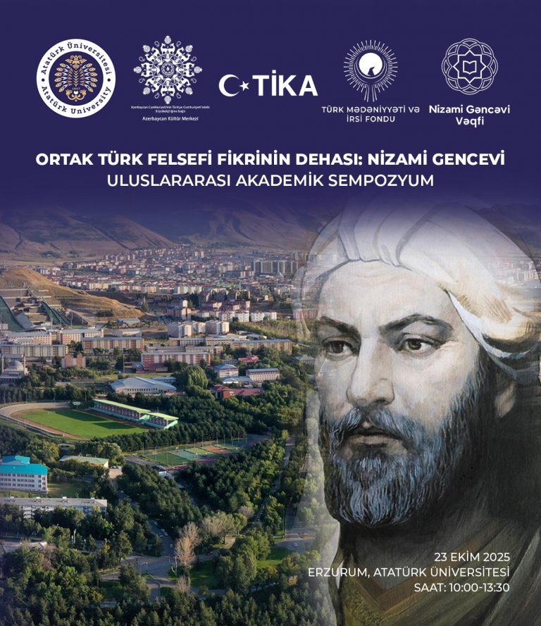 Atatürk Üniversitesi, Azerbaycan Cumhuriyeti’nin Türkiye Cumhuriyeti’ndeki Büyükelçiliği’ne bağlı Azerbaycan Kültür Merkezi, TİKA, Türk Mədəniyyəti və İrsi Fondu ve Nizami Gəncəvi Vəqfi iş birliğiyle, 23 Ekim 2025 tarihinde Atatürk Üniversitesi Prof. Dr. Kemal Bıyıkoğlu Salonunda “Türk Felsefi Düşüncesinin Dehası: Nizami Gencevi Uluslararası Sempozyumu” gerçekleştirilecektir.
