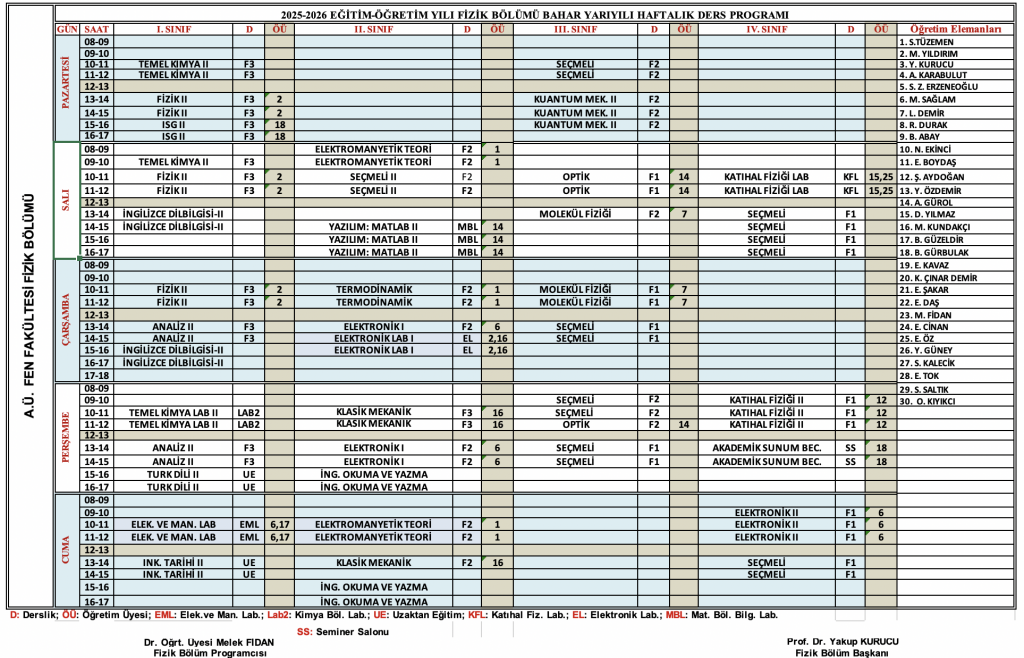 28 Ocak 2026 2025–2026 Eğitim-Öğretim Yılı Bahar Dönemi Fizik Bölümü Ders Programı Taslağı Tıklayınız