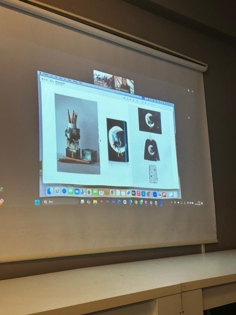Sernur Işık Bolanos, illüstrasyonun farklı malzeme kültürleriyle –özellikle seramikle– nasıl ilişkilendirilebileceğini, zanaat ile dijital/analog illüstrasyon arasındaki etkileşimi ve yaratıcı üretimin çok disiplinli doğasını ele aldı. Öğrenciler, tasarımın yalnızca dijital bir alanla sınırlı olmadığını, aksine malzemeyle kurulan ilişkinin de güçlü bir iletişim aracı olduğunu deneyimlediler.