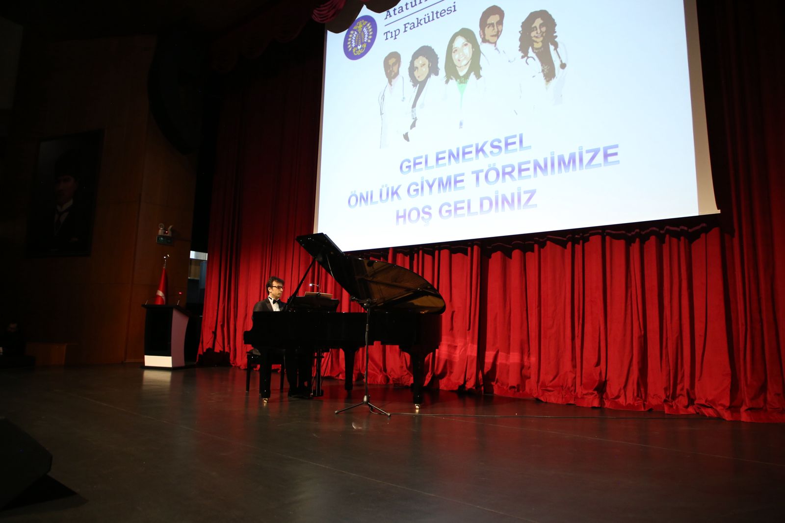 Üniversitemiz Tıp Fakültesi tarafından düzenlenen Geleneksel Önlük Giyme Töreni, fakültemiz Müzik Bilimleri Bölümü Arş. Gör. Ahmet Alumur’un sunduğu piyano dinletisiyle başladı.