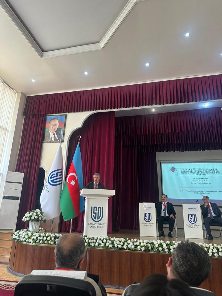 Fakülte Dekanımız Prof. Dr. Reşat Karcıoğlu bugün (12.11.2025) Bakü -Azerbaycan'da, I. Maliye, Muhasebe, Denetim ve Dijitalleşme Uluslararası Sempozyumu'nda, Hukuk Fakültelerinde Muhasebe Derslerinin Yeri: Hukuk Fakültelerine Yönelik Bir Araştırma isimli bildirisini sunmuştur.