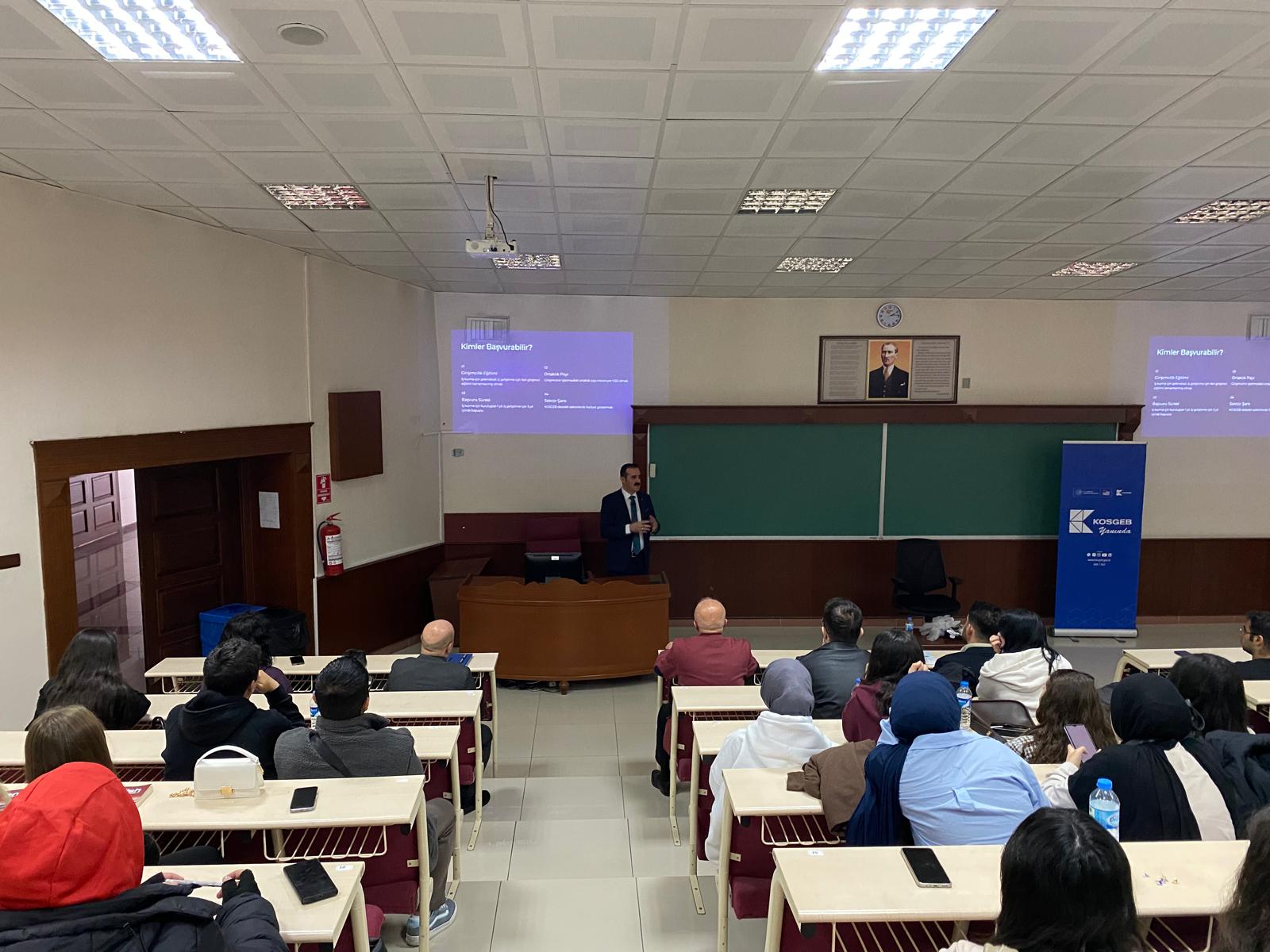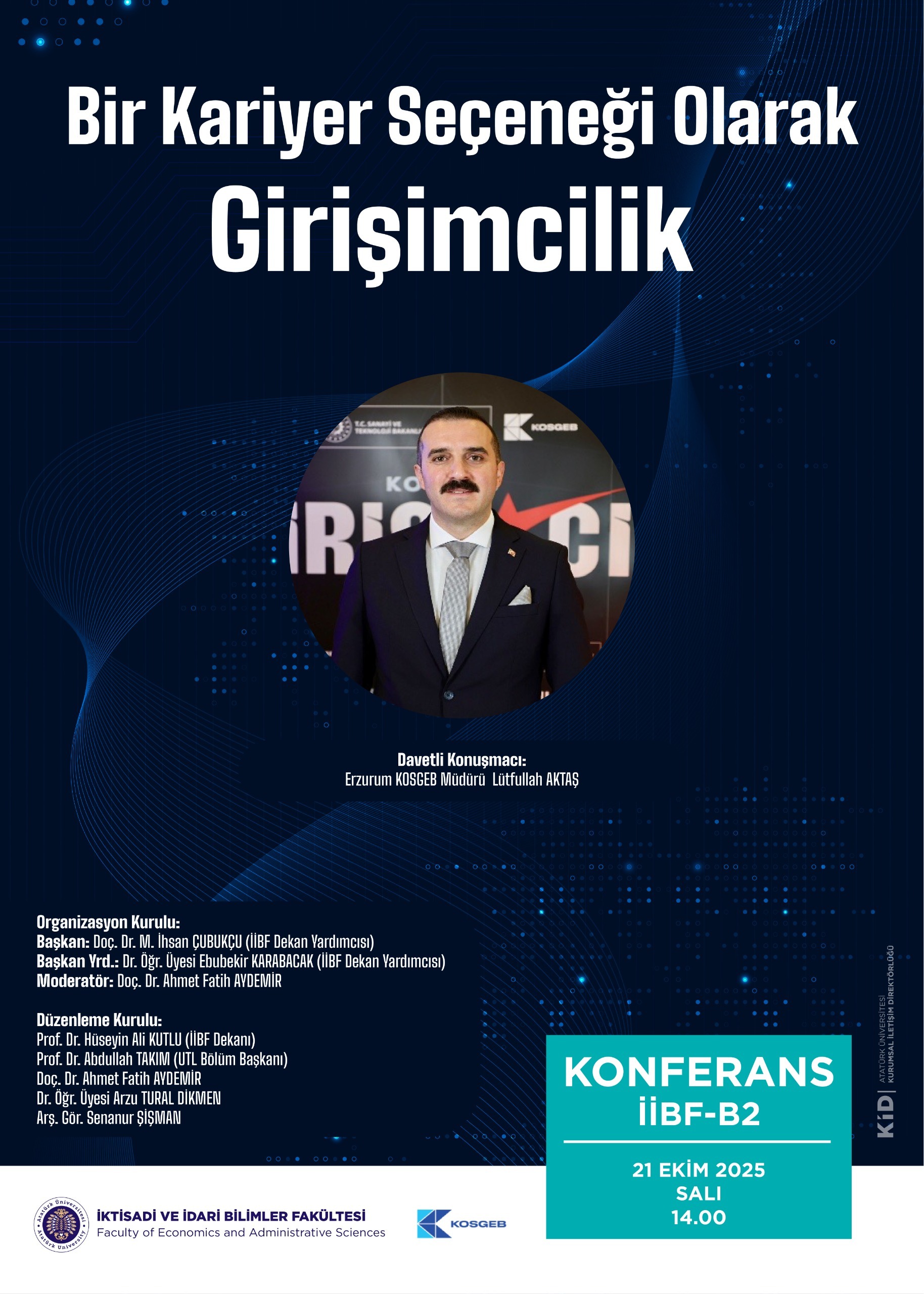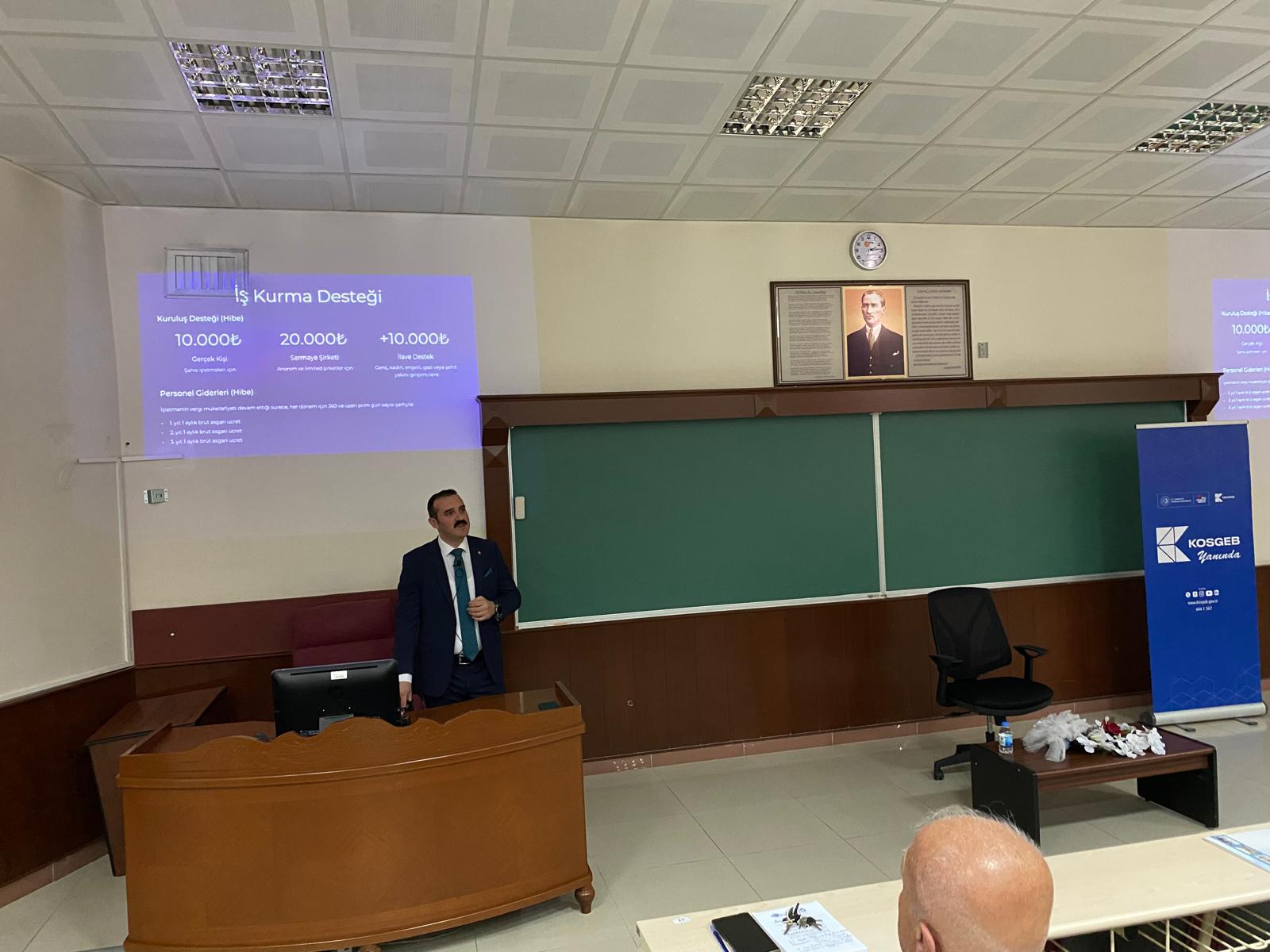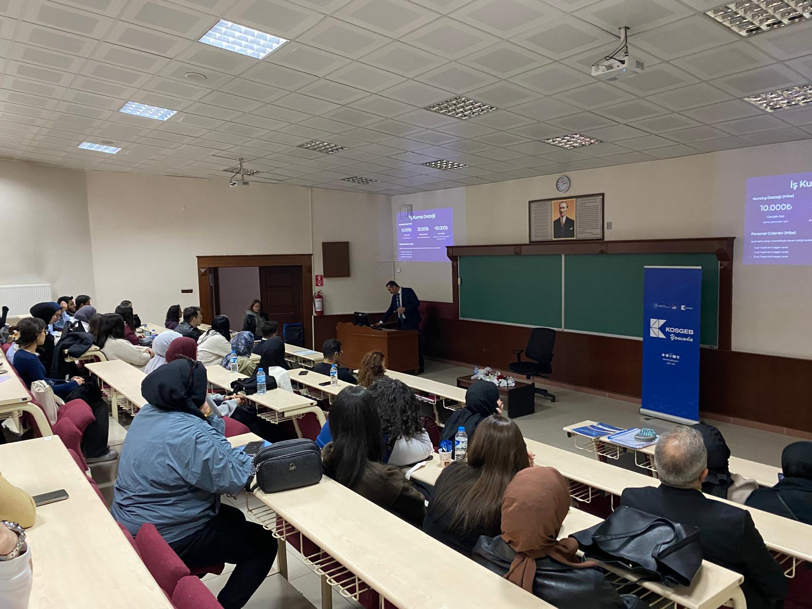 Fakültemiz öğrencilerine yönelik Girişimcilik konusunda bilgilendirme konferansı gerçekleştirilmiştir. Erzurum KOSGEB İl Müdürü Sayın Lütfullah AKTAŞ Beyefendi tarafından öğrencilerimize girişimcilik ve iş kurma destekleri hakkında detaylı bilgiler verilmiştir. Konferans sonunda Fakülte Dekanımız Prof. Dr. Hüseyin Ali KUTLU tarafından teşekkür belgeleri verilmiştir. Konferansın gerçekleştirilmesinde emeği geçen herkese fakültemiz adına teşekkürlerimizi sunarız.