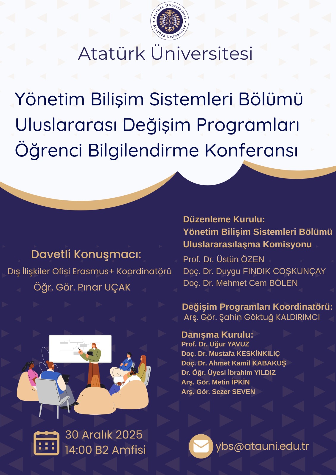 30 Aralık 2025 Konferans – YBS Bölümü Uluslararası Değişim Programları Öğrenci Bilgilendirme Konferansı Etkinlik ayrıntıları aşağıda yer alan afiştedir.