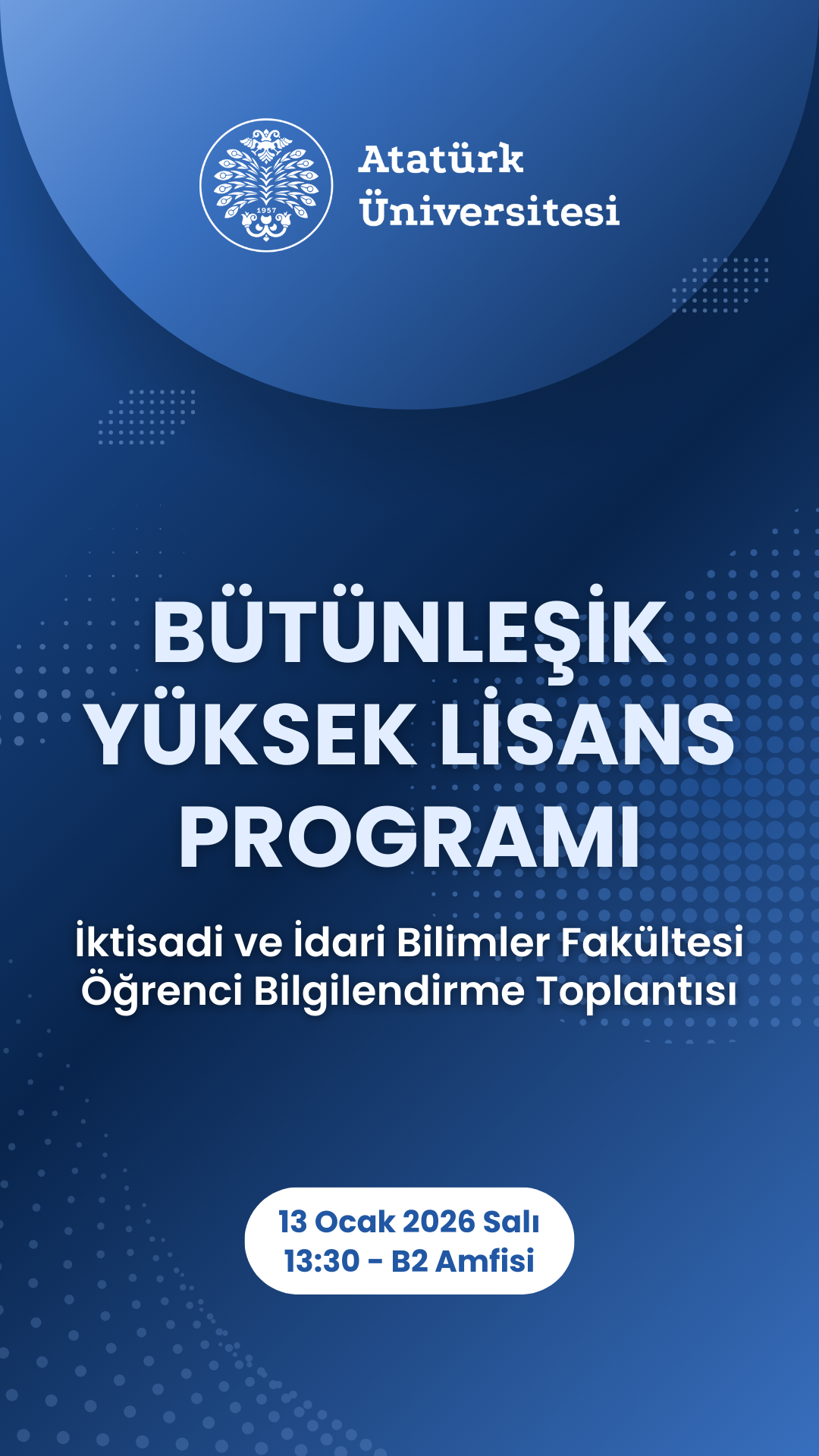 Fakültemiz öğrencilerine yönelik Bütünleşik Yüksek Lisans Öğrenci Bilgilendirme Toplantısı 13 Ocak 2026 Salı günü saat 13:30’da Fakültemiz B2 amfisinde gerçekleştirilecektir. Tüm öğrencilerimizin katılmasını önemle rica ederiz.