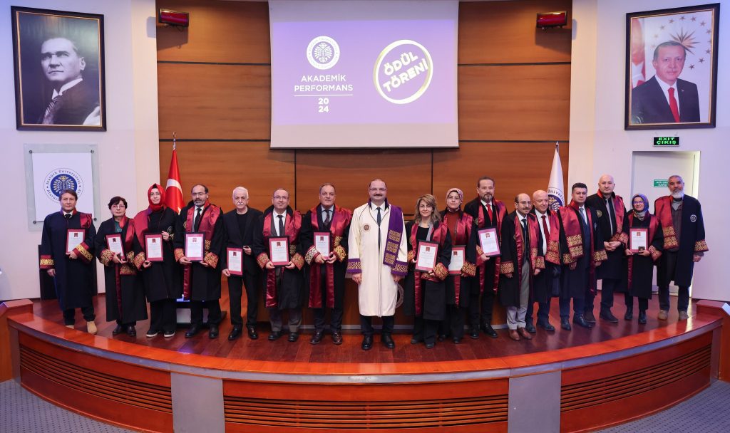 Atatürk Üniversitesi tarafından araştırma, eğitim, toplum, spor, sanat ve kurumsal gelişim misyonlarına sundukları nitelikli katkılarla öne çıkan akademisyenleri onurlandırmak amacıyla düzenlenen 2024 Yılı Akademik Performans Ödül Töreni, Rektör Prof. Dr. Ahmet Hacımüftüoğlu’nun katılımıyla gerçekleşti.