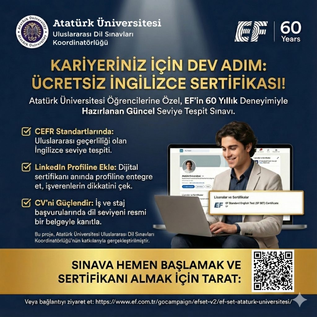 Atatürk Üniversitesi Öğrencilerine Ücretsiz İngilizce Sertifikası Fırsatı!