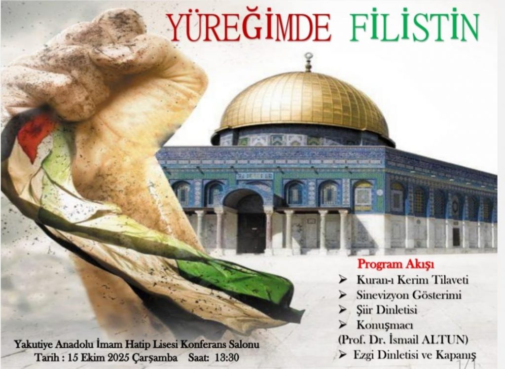 Araştırma Merkezi Müdürümüz Prof. Dr. İsmail ALTUN, 15 Ekim 2025 tarihinde Erzurum Yakutiye Anadolu İmam Hatip Lisesinde erkek öğrencilere yönelik “Yüreğimde Filistin” konulu bir konferans gerçekleştirdi.