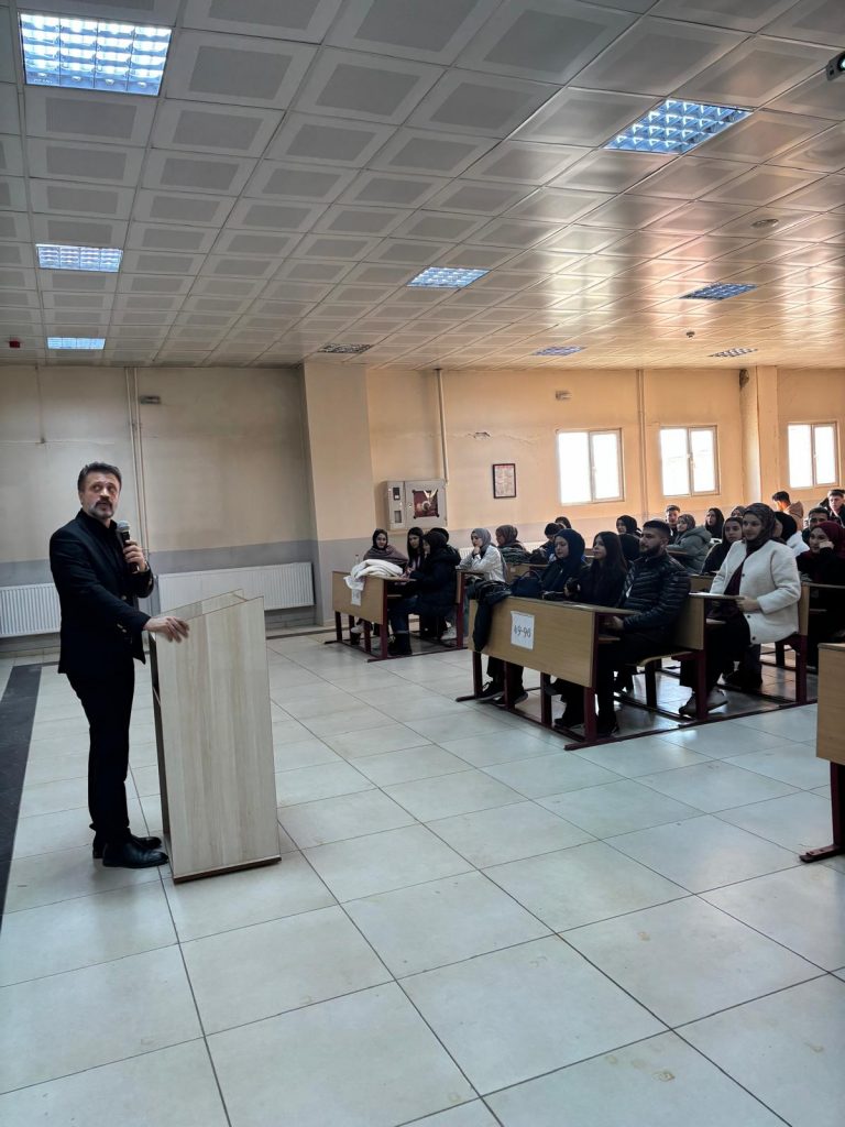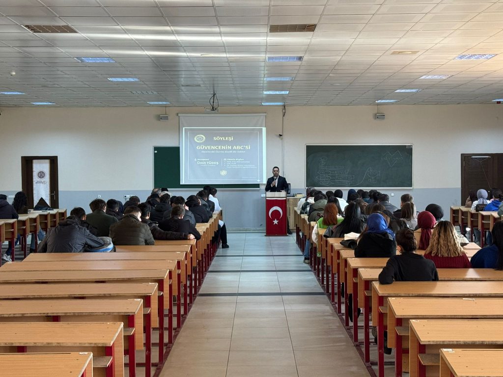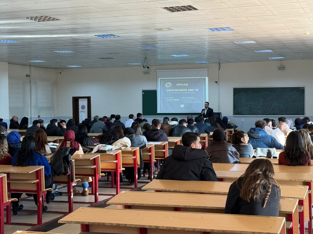 Proje yürütücüsü Öğr. Gör. Veysel DEĞEN’in açılış konuşması ve proje tanıtımıyla başlayan programda, Sigorta Uzmanı Ümit TÜDEŞ kürsüye gelerek sigortacılık mesleğinin inceliklerini aktardı. “Güvencenin ABC’si” temasıyla gerçekleşen sunumda TÜDEŞ; sigortanın toplumsal yaşamdaki yeri, risk yönetimi ve sektörün geleceği konularında öğrencilere önemli bilgiler verdi.