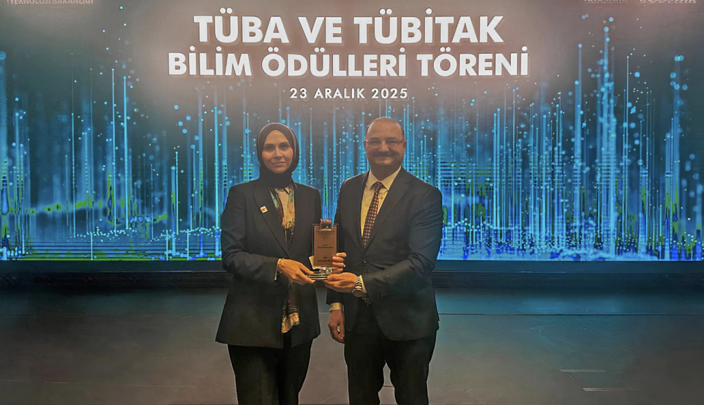 Törende, Atatürk Üniversitesi Mühendislik Fakültesi öğretim üyelerinden Prof. Dr. Rabia Meryem Yılmaz, TÜBA 2025 Yılı Üstün Başarılı Genç Bilim İnsanı (GEBİP) Ödülüne layık görülerek önemli bir başarıya imza attı. Prof. Dr. Yılmaz’ın ödülünü Cumhurbaşkanı Recep Tayyip Erdoğan’ın elinden alması, Atatürk Üniversitesi ailesi için ayrı bir onur ve gurur kaynağı oldu. Rektör Prof. Dr. Ahmet Hacımüftüoğlu da bu anlamlı ve gurur verici anlarda kıymetli akademisyeni yalnız bırakmayarak törende hazır bulundu.