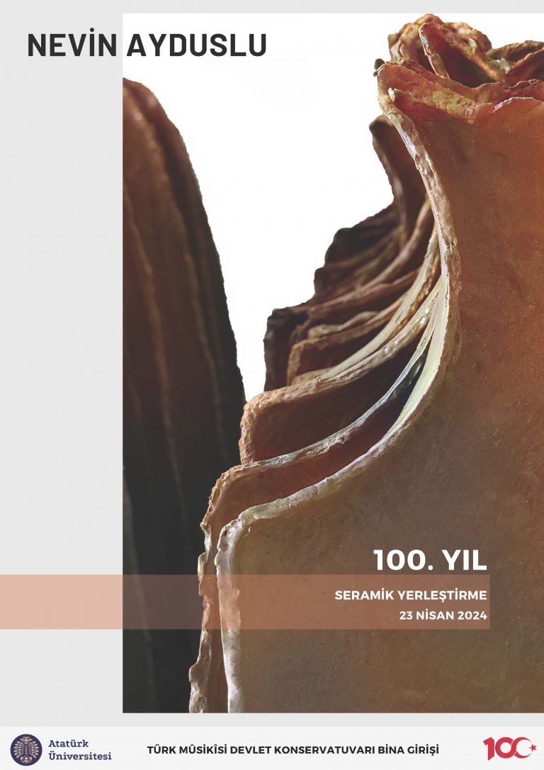 Bölümümüzün Öğretim Üyesi Doç. Dr. Nevin AYDUSLU tarafından Cumhuriyetimizin kuruluşunun 100. yılına ithafen hazırlanan seramik yerleştirme eseri, Türk Musikisi Devlet Konservatuvarı’nın bina girişinde sergilenmektedir.
