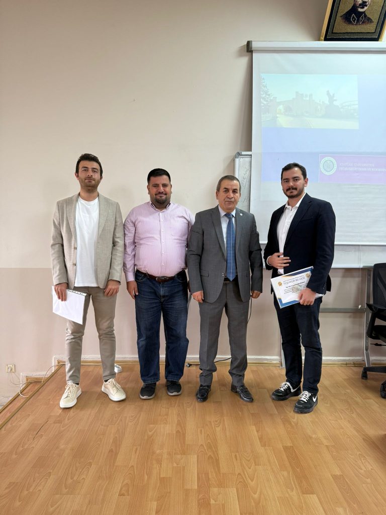 Bilimsel etkinliğimize katkı sağlayan Üniversitemiz Proje Ofisi Koordinatörlerinden Dr. Öğr. Üyesi Faruk Baturalp Günat, Öğr. Gör. Sadrettin Gölcügezli ve Muhammet Emin Kula hocalarımıza;