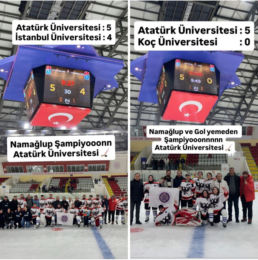 Atatürk Üniversitesi, Curling branşındaki büyük başarısının ardından, Buz Hokeyi Erkek ve Kadın Takımlarında da namağlup Türkiye Şampiyonu olarak üniversite sporları tarihine bir başarı daha eklemiştir.
