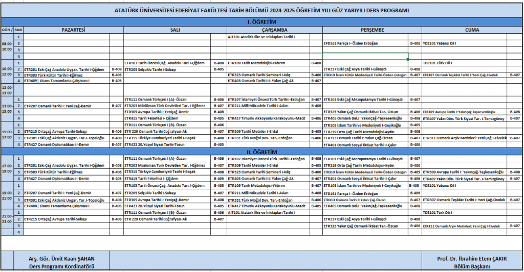 2025-2026 Eğitim-Öğretim Yılı Güz Yarıyılı Ders Programı