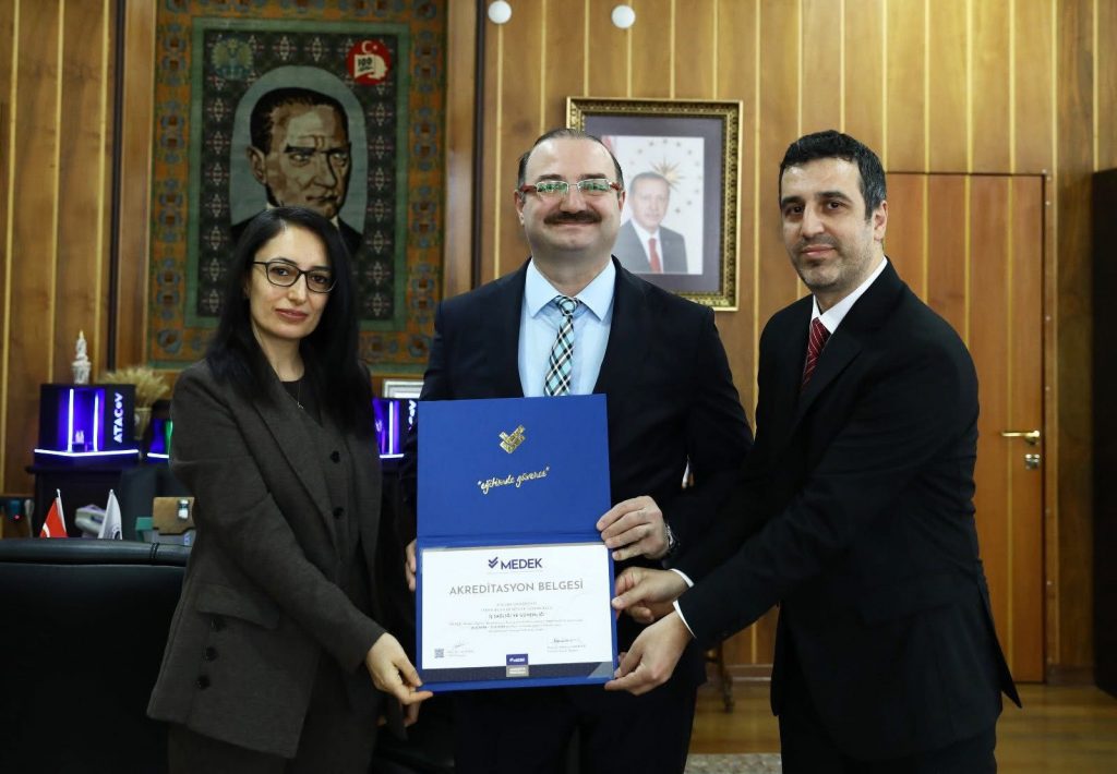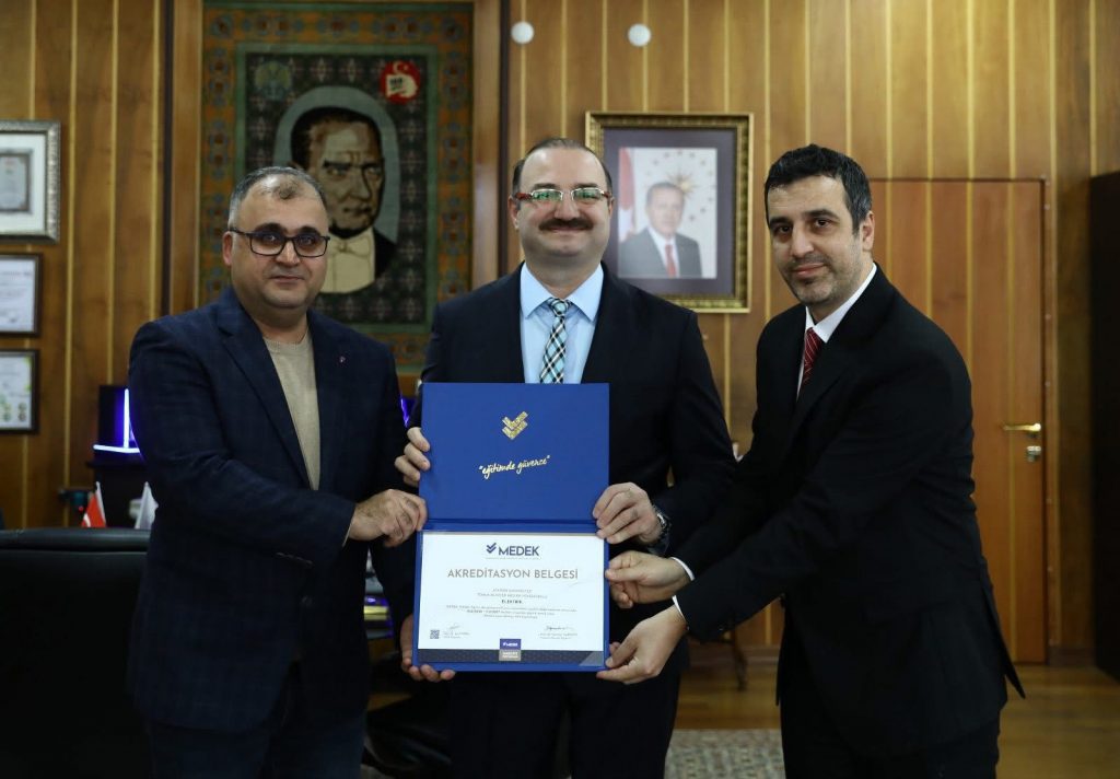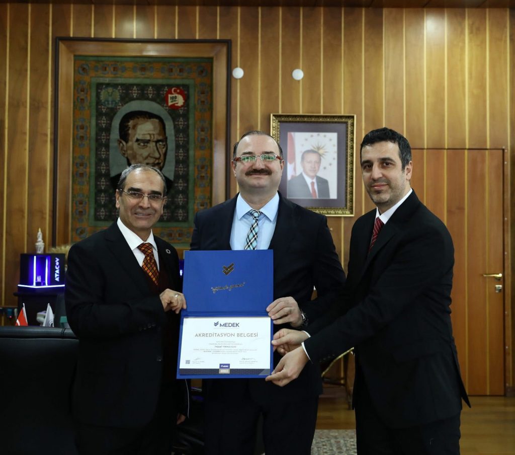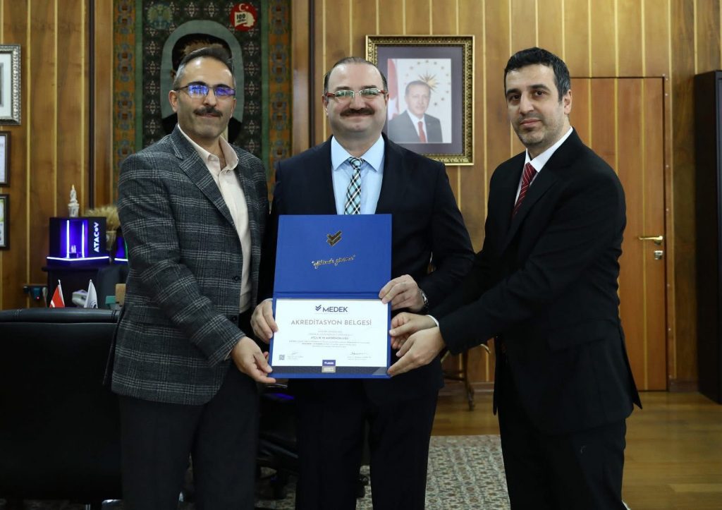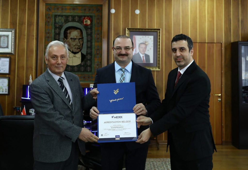 Akreditasyon sürecini başarıyla tamamlayan Gıda Teknolojisi, Atçılık ve Antrenörlüğü, Kimya Teknolojisi, Bilgisayar Programcılığı, İnşaat Teknolojisi, Elektrik, Makine ile İş Sağlığı ve Güvenliği programlarına ait MEDEK Akreditasyon Belgeleri Rektörümüz Prof. Dr. Ahmet HACIMÜFTÜOĞLU, Meslek Yüksekokulu Müdürü Prof.Dr. Hayrunnisa NADAROĞLU, Müdür Yardımcıları Prof.Dr. Arzu KAVAZ YÜKSEL, Dr.Öğr.Ü. Hüseyin GÜLLÜCE ve Program Başkanları Prof.Dr. Abdulkerim DİLER, Prof.Dr. Abdulkadir KAN, Prof.Dr. Mustafa ERAT, Prof.Dr. M.Dursun KAYA, Prof.Dr. Ebru BOZKURT, Dr.Öğr.Ü. Fatih IŞIK’ın katılımıyla