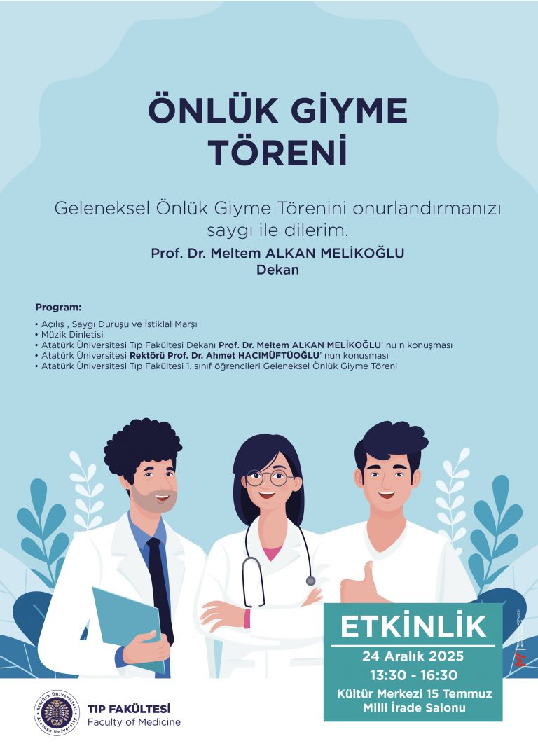 Geleneksel Önlük Giyme Töreni, 24 Aralık 2025 Çarşamba günü 13:30–16:30 saatleri arasında 15 Temmuz Milli İrade Salonu’nda gerçekleştirilecektir.