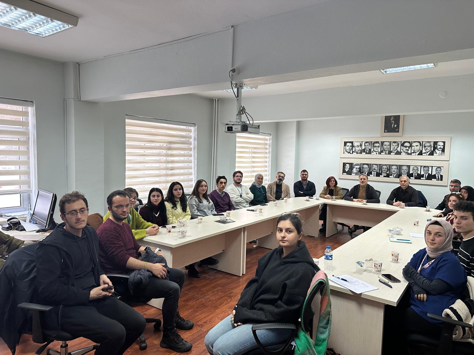 Tıp Fakültesi Mezuniyet Öncesi Program Değerlendirme ve Müfredat Geliştirme Komisyonu toplantısı; komisyon üyesi öğretim üyeleri ile İngilizce ve Türkçe Tıp Fakültesi sınıf temsilcisi öğrencilerin katılımıyla gerçekleştirildi. Toplantıda, mezuniyet öncesi eğitim programlarının değerlendirilmesi ve müfredat geliştirme süreçlerine ilişkin görüş ve öneriler ele alındı.