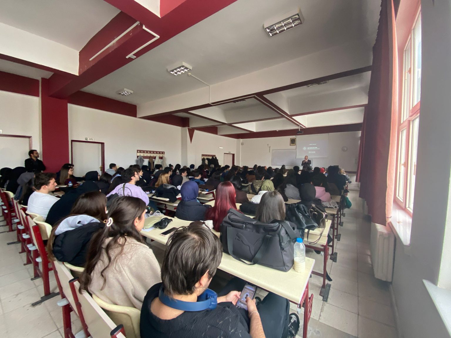 Öğr. Gör. Pınar Uçak ve Öğr. Gör. Asena Dinç’in (Dış İlişkiler Ofisi) bilgilendirici sunumlarıyla öğrencilerimizin değişim programlarına yönelik farkındalığı artırıldı.