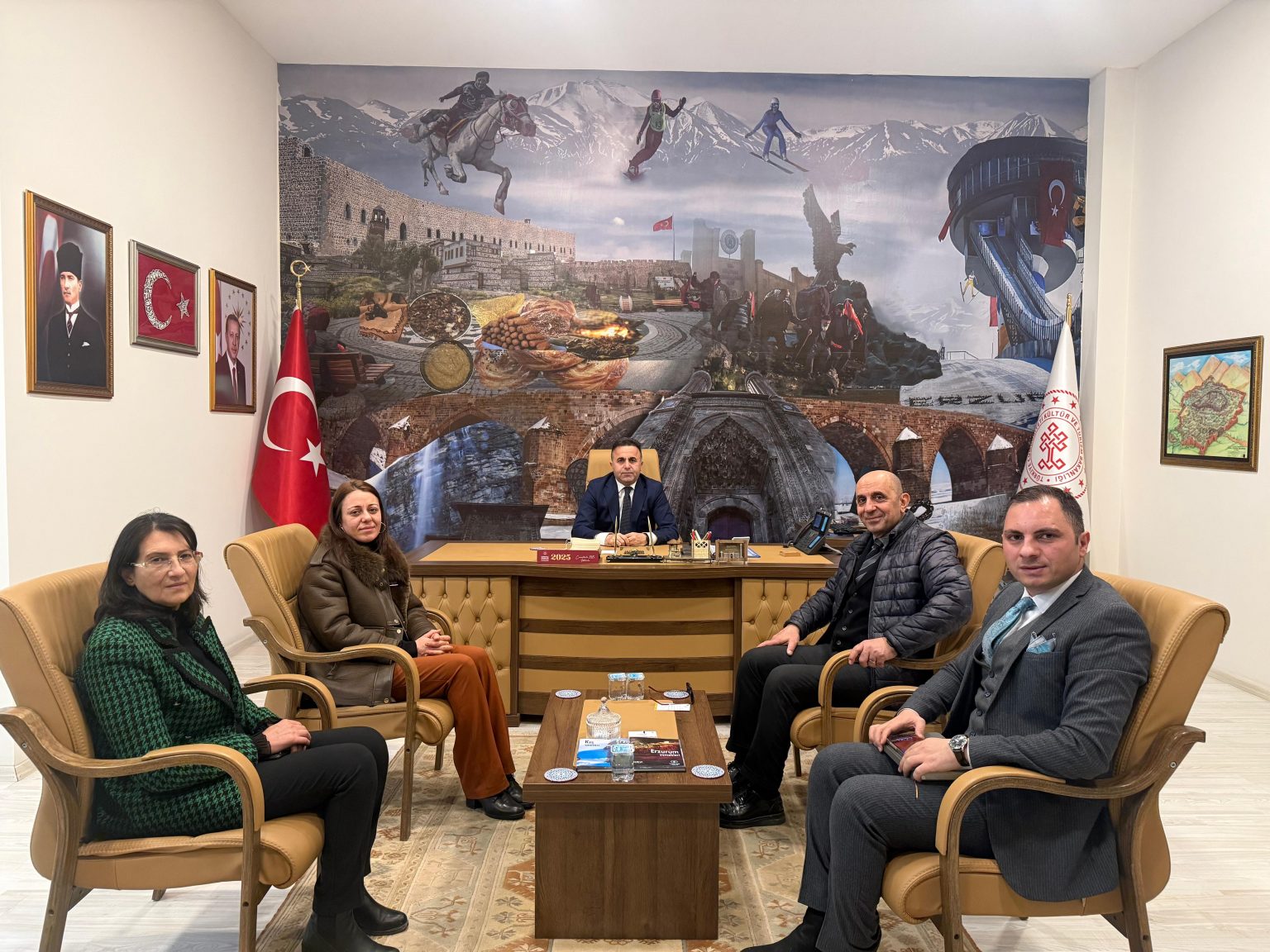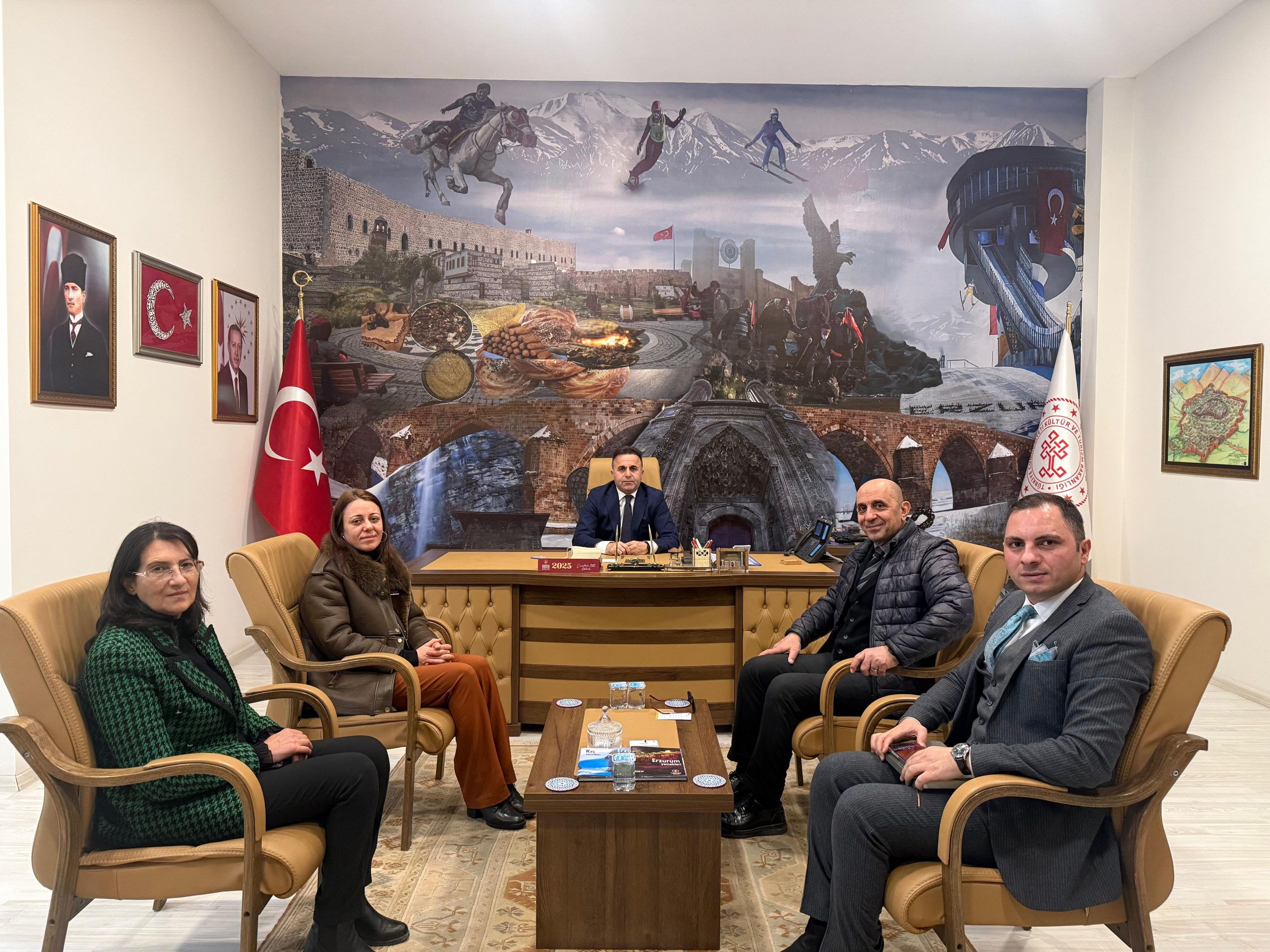 Turizm Fakültesi Dekanımız Prof. Dr. Gökalp Nuri Selçuk ve Dekan Yardımcımız Doç. Dr. Neslihan Serçeoğlu, Erzurum İl Kültür ve Turizm Müdürü Ahmet Yer’i ziyaret etti. Gerçekleşen ziyarette, Erzurum turizminin gelişimine yönelik yapılabilecek iş birlikleri, ortak projeler ve akademik katkılar üzerine karşılıklı görüş alışverişinde bulunuldu. Sayın Yer’e nazik ev sahipliği için teşekkür ediyor, çalışmalarında başarılar diliyoruz..