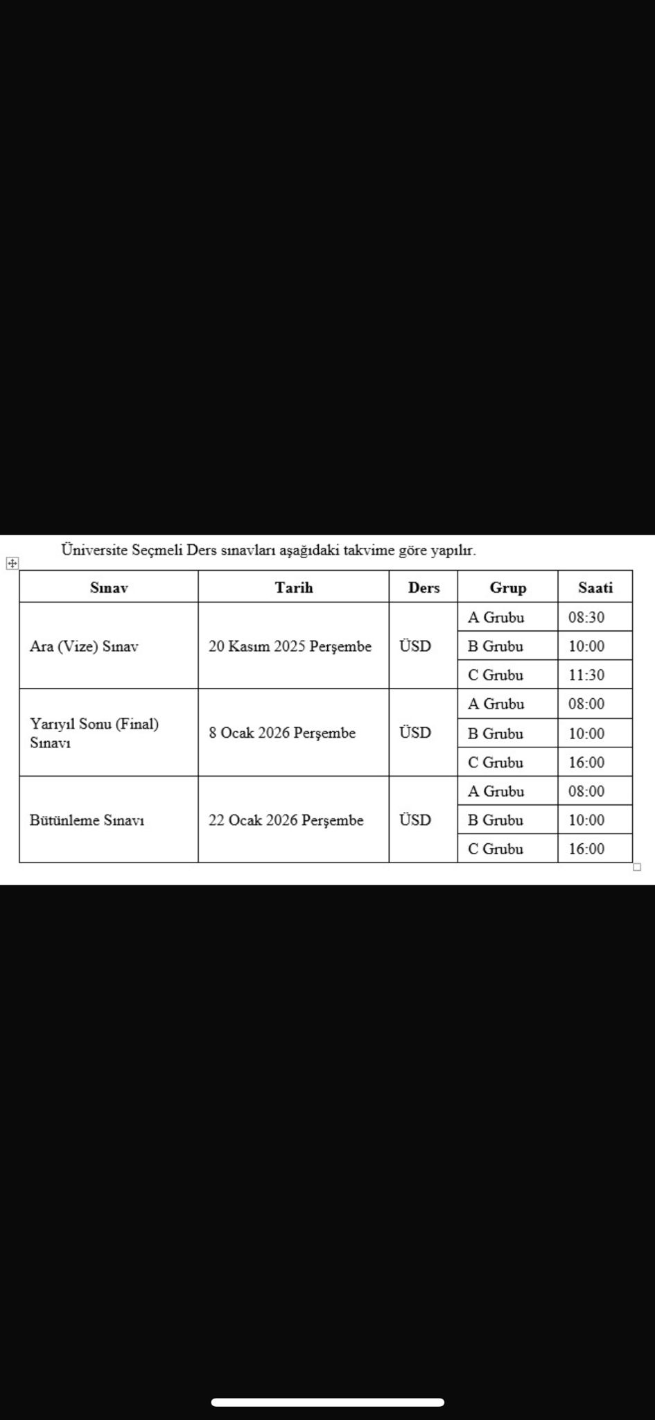 7 Kasım 2025 2025-2026 Eğitim Öğretim Yılı ÜSD (Vize, Final, Bütünleme) Sınavı Tarih ve Saatleri ÜSD Sınavı Tarih ve Saatleri