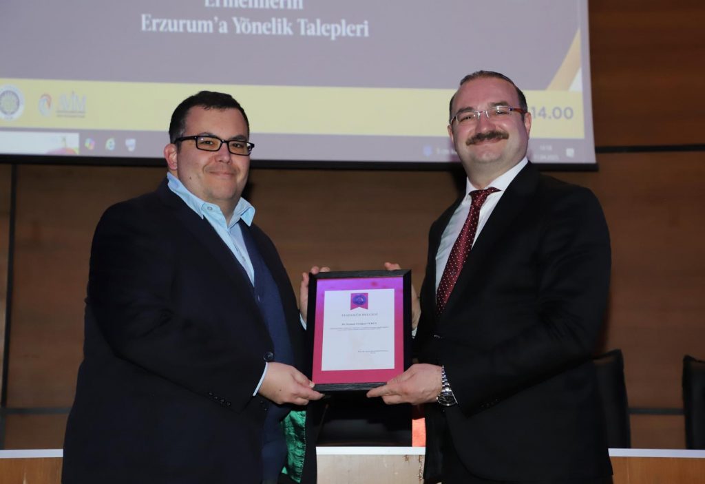 Panelin moderatörlüğünü Dr. Teoman Ertuğrul Turun üstlenirken, oturumda Türk-Ermeni ilişkileri, Ermenilerin Erzurum’daki talepleri, hukuki süreçler ve uluslararası hukuk bağlamında konunun çok yönlü analizi yapıldı.