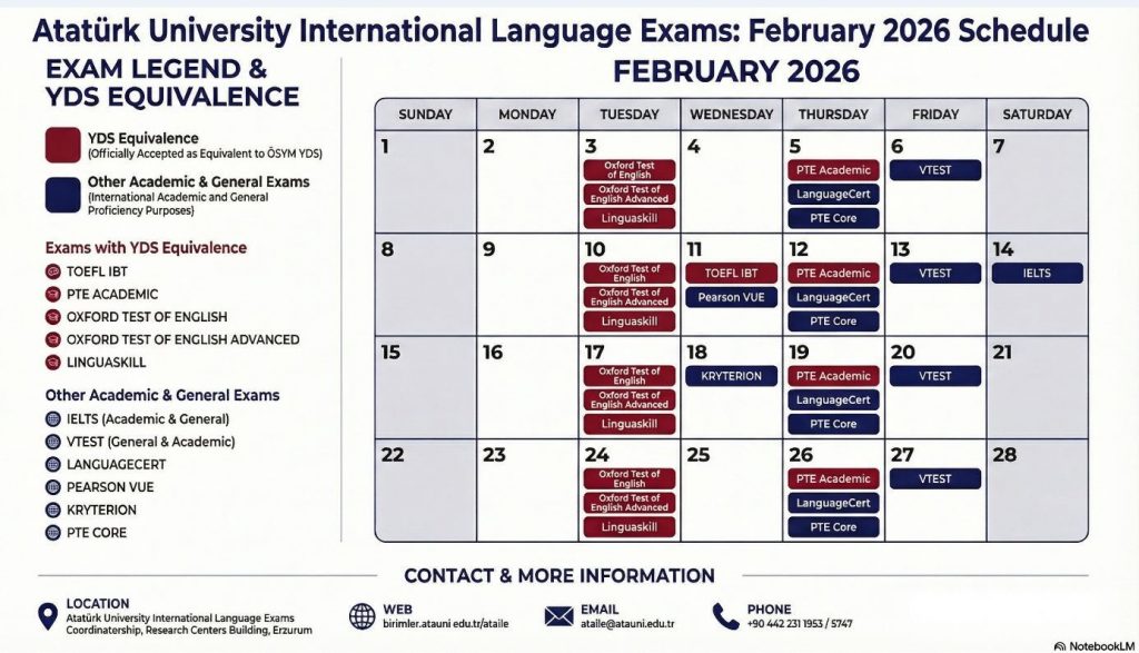 7 Ocak 2026 Atatürk Üniversitesi Uluslararası Dil Sınavları Şubat Ayı Takvimi Atatürk Üniversitesi Uluslararası Dil Sınavları Şubat Ayı Takvimi