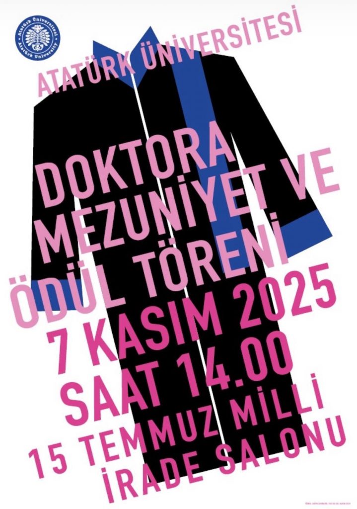 Üniversitemiz bünyesinde düzenlenen Doktora Mezuniyet ve En İyi Tez Ödül Töreni, 7 Kasım 2025 Cuma günü saat 14.00’te Rektörlük Milli İrade Salonu’nda gerçekleştirilecektir. Törende 01 Eylül 2023-30 Eylül 2025 tarihleri arasında tezini başarıyla savunmuş ve mezun olmuş öğrencilerimiz diplomalarını alacak, ayrıca jüri değerlendirmesi sonucu belirlenen En İyi Tez Ödülleri sahiplerine takdim edilecektir.