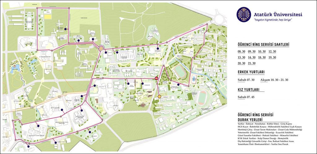 *Kampüs içi ring servisinin saatleri ve durak yerleri: