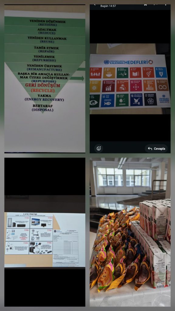 Çevre bilincinin artırılması ve sürdürülebilir yaşam pratiklerinin yaygınlaştırılması amacıyla hayata geçirilen projede, alanında uzman isimler öğrencilerle bir araya geldi. Etkinlikte konuşmacı olarak Prof. Dr. Zeynep Ceylan ile Çevre Yüksek Mühendisi Elif Tuna Pulaş yer aldı. Konuşmalarda sıfır atık yaklaşımı, evsel atıkların ayrıştırılması ve kompost üretiminin çevresel etkileri ele alınırken, bireysel düzeyde uygulanabilecek pratik yöntemler de katılımcılarla paylaşıldı.
