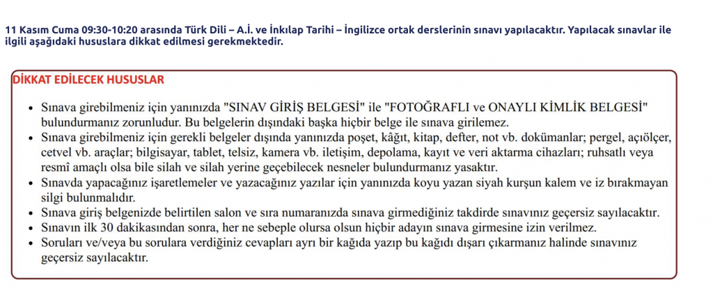 Ortak Derslerin Vize Sınavları İle İlgili Duyuru