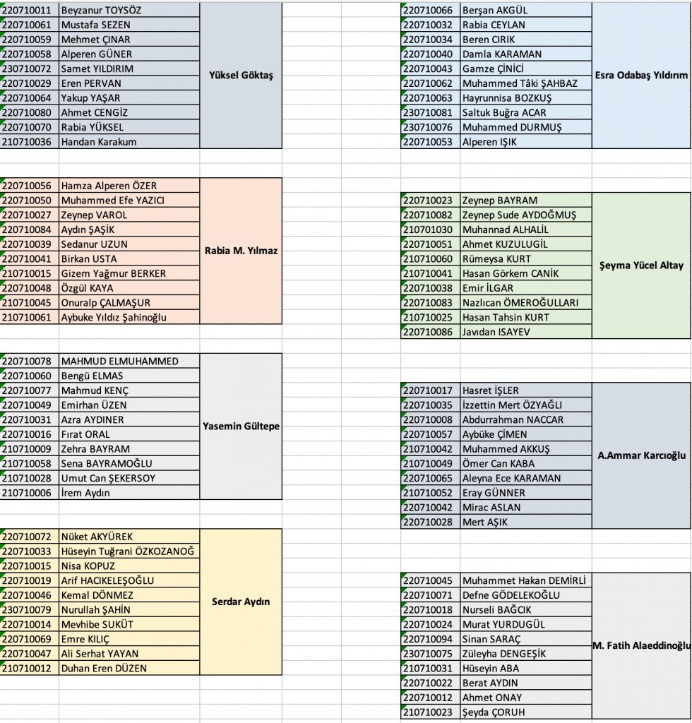 Seçmeli Tasarım Dersi-Danışman Listesi